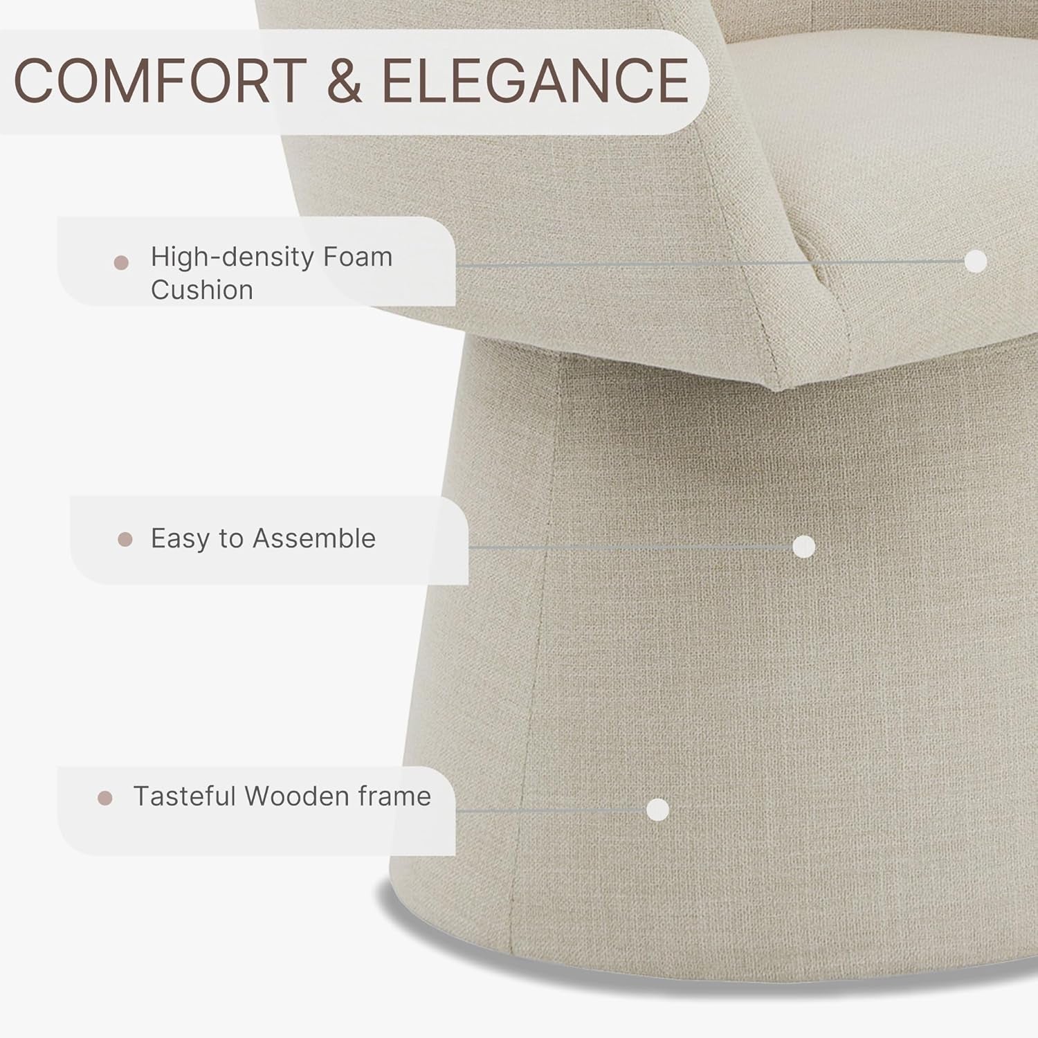 - Soft & Luxurious Fabric: Crafted from high-quality linen, these chairs offer a luxurious touch and are paired with high-density foam cushions for optimal support.
