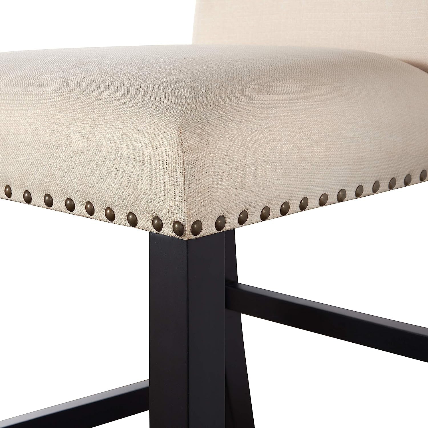 - 【Ergonomic Upholstered Seating】The beige fabric upholstered counter height chairs feature slightly curved back rests for ergonomic support while the seats are filled with plush fire-proof sponge allowing you to sit for extended periods of time in comfort. 4 base wooden spindles offer reinforced support and solid stability for increased weight capacity holding up to 250lbs.