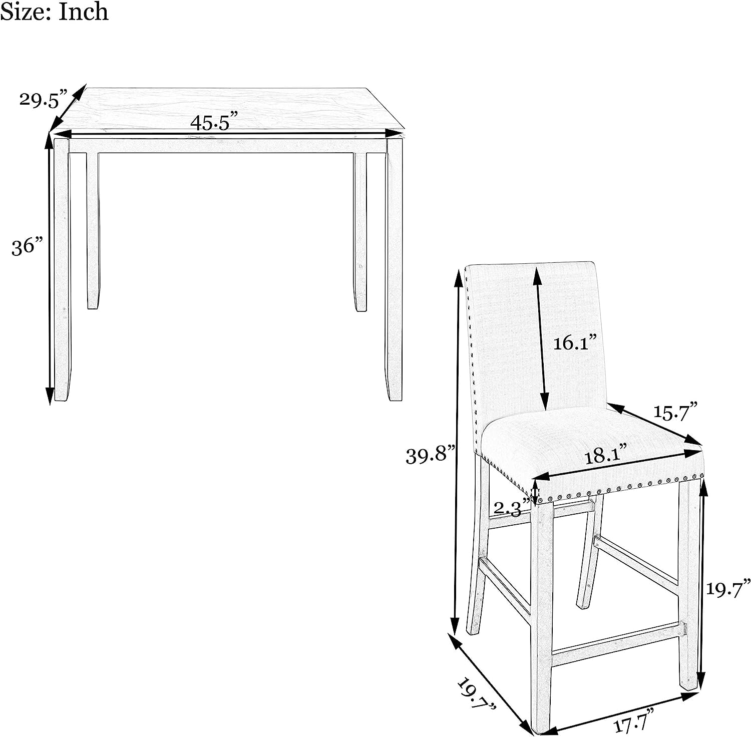 - 【Compact Statement Piece】With a charming compact build, this counter height set suits small spaces without compromising on style, proving classy furniture doesn’t have to be big and bulky. Resilient and durable for full functionality, this dining set can withstand heavy usage without wear while also serving as an eye-catching statement piece in your home when not in use. This set seats up to 4 adults offering ample space for your family or guests.