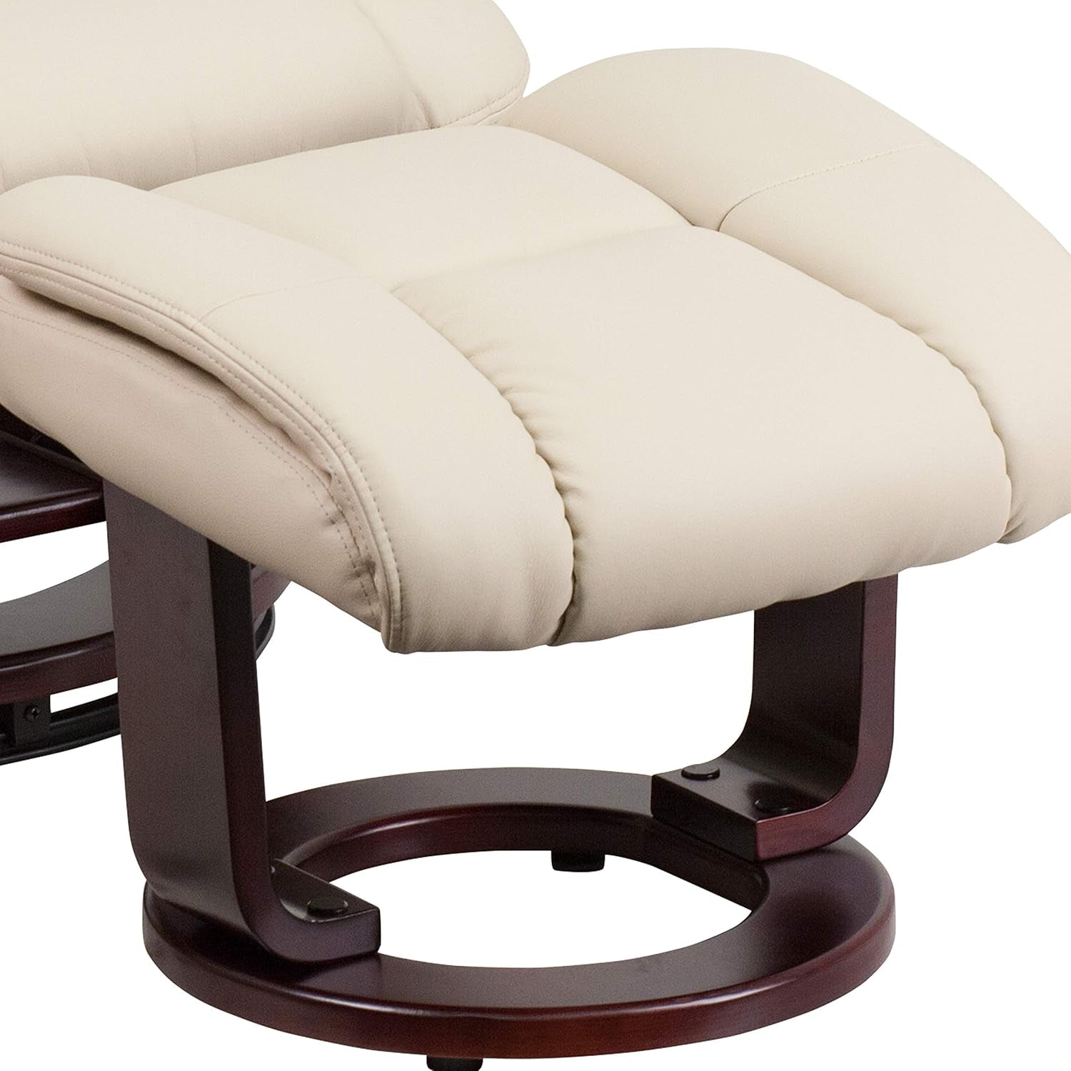 Beige Leathersoft Upholstered Recliner With Ottoman