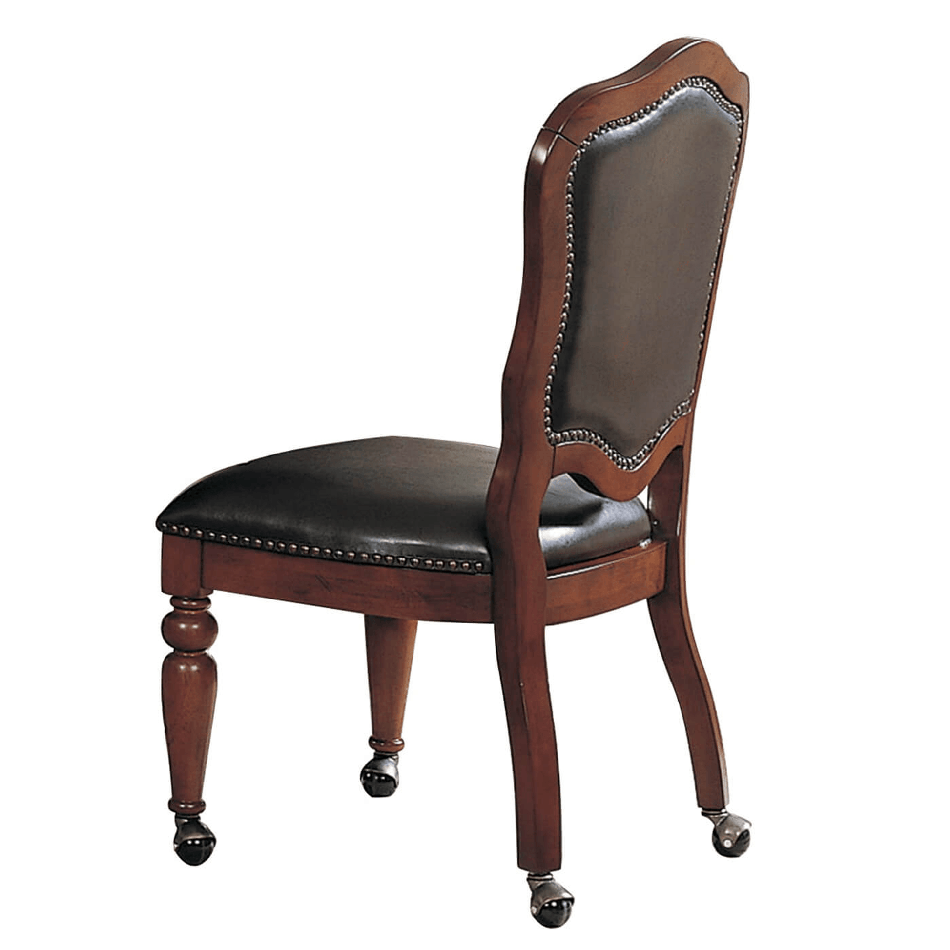 Adorned with regal nailheads, the chairs display a refined aesthetic that complements the intricacies of your décor. The inclusion of casters adds a modern twist, enabling effortless mobility. Whether you're rearranging the room for a dinner party or simply want to reposition yourself for that winning hand, these chairs provide the versatility you need.