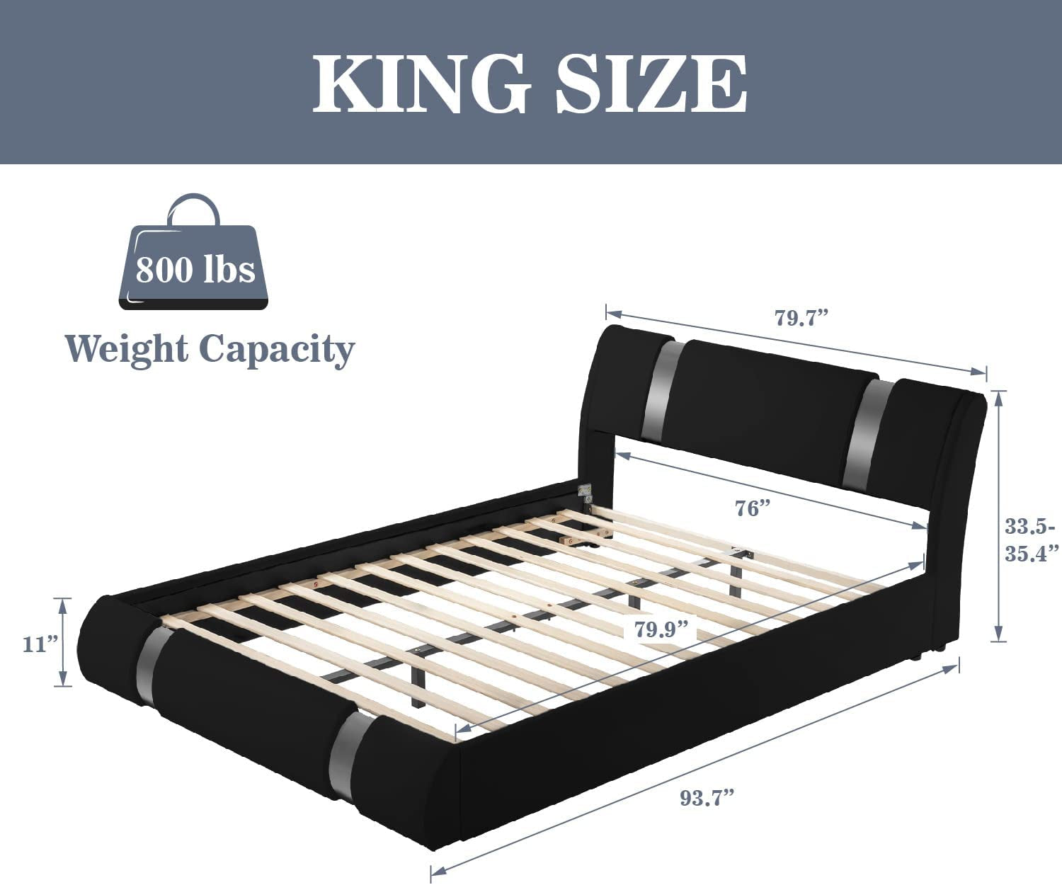 Black King Faux Leather Platform Bed Adjustable Headboard