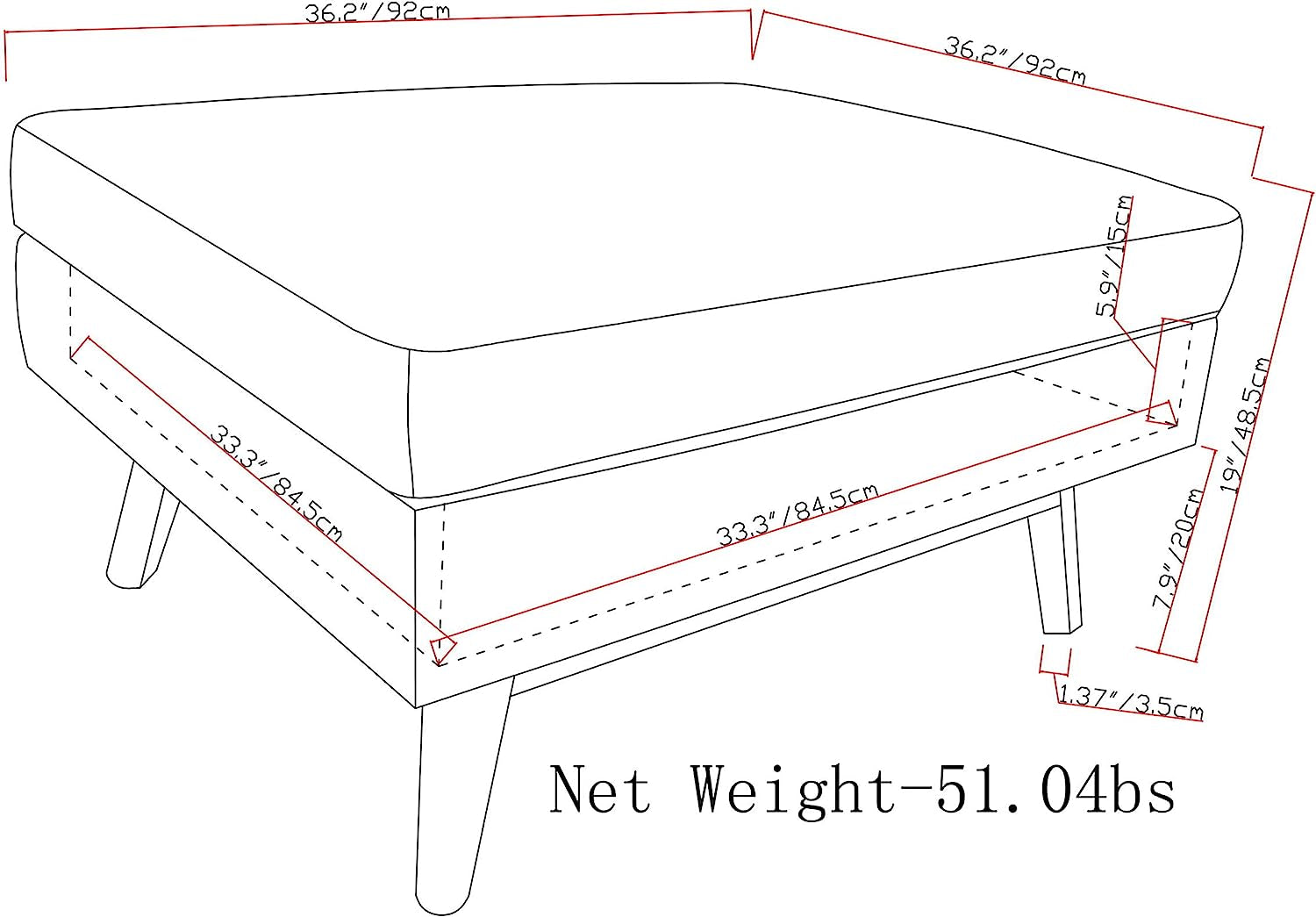 - DIMENSIONS: 36"D x 36"W x 19.1"H