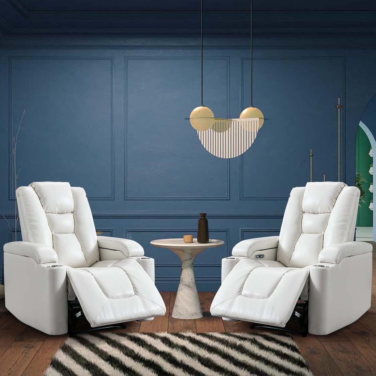 Luxurious White Recliner Chairs with USB and Cup Holders